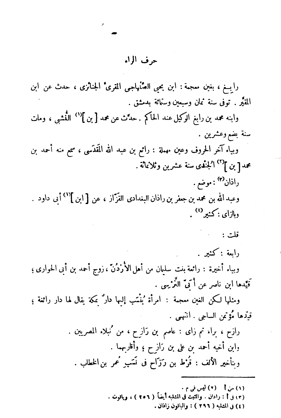 وبياء أخيرة: رائعة بنت سليمان من أهل الأردن، زوج أحمد بن أبي الحواري؛ قيدها ابن ناصر عن أبي النرسي.