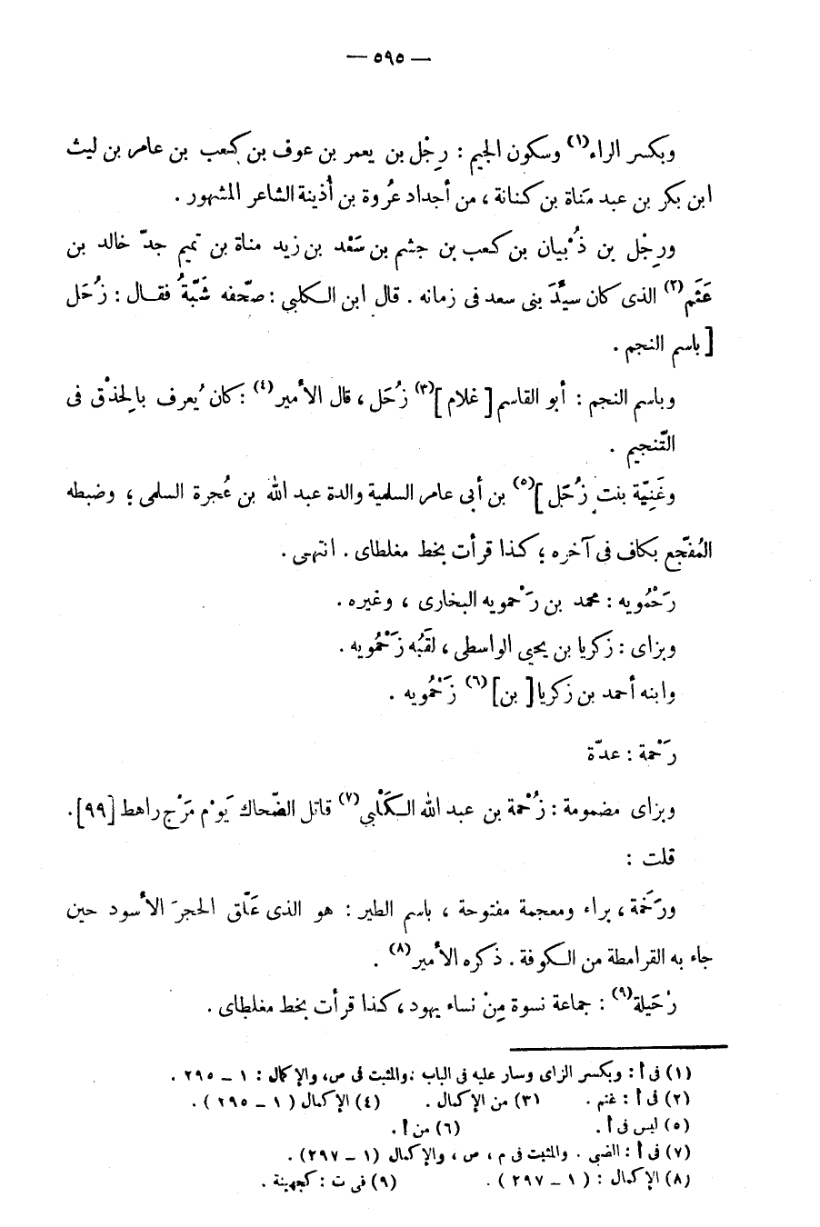 وبزاي مضمومة: زحمة بن عبد الله الكلبي قاتل الضحاك يوم مرج راهط 99.