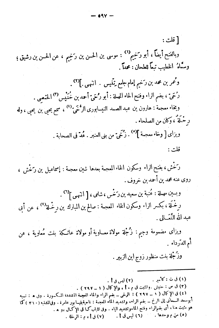 قلت: وبالفتح أيضاً، أبو رخيم: موسى بن الحسن بن رخيم، عن الحسن بن رشيق؛ وسماه الخطيب تبعاً للطحان: محمداً.