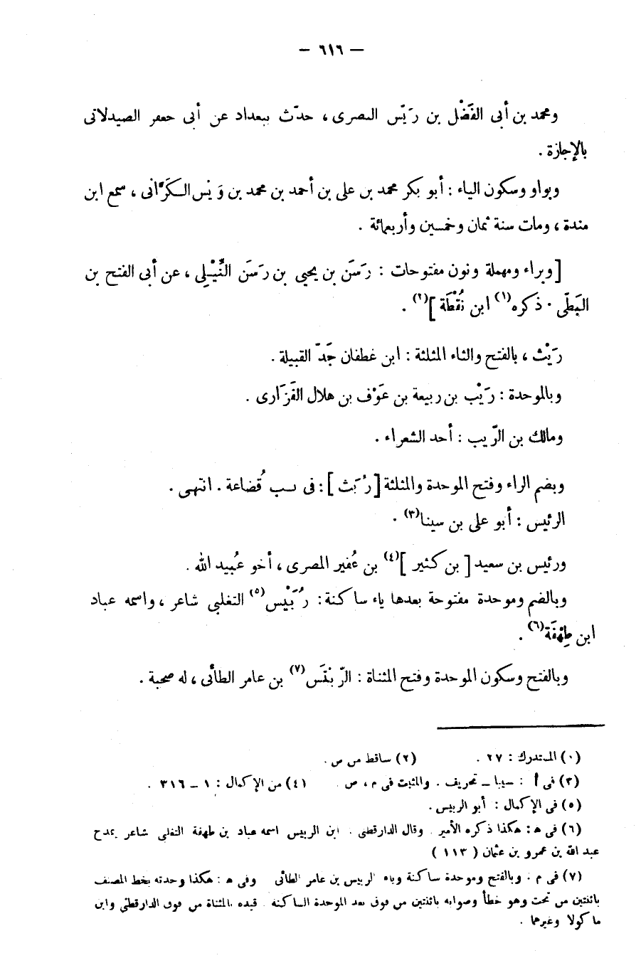وبراء مهملة ونون مفتوحات: رسن بن يحيى بن رسن النيلي، عن أبي الفتح بن البطي. ذكره ابن نقطة.