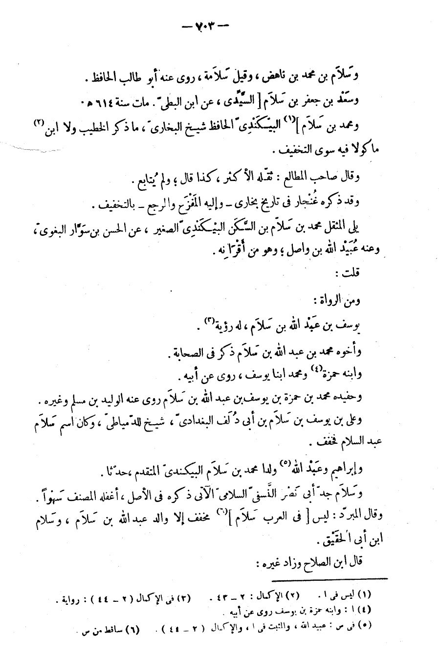ومحمد بن سلام البيكندي الحافظ شيخ البخاري، ما ذكر الخطيب ولا ابن ماكولا فيه سوى التخفيف.