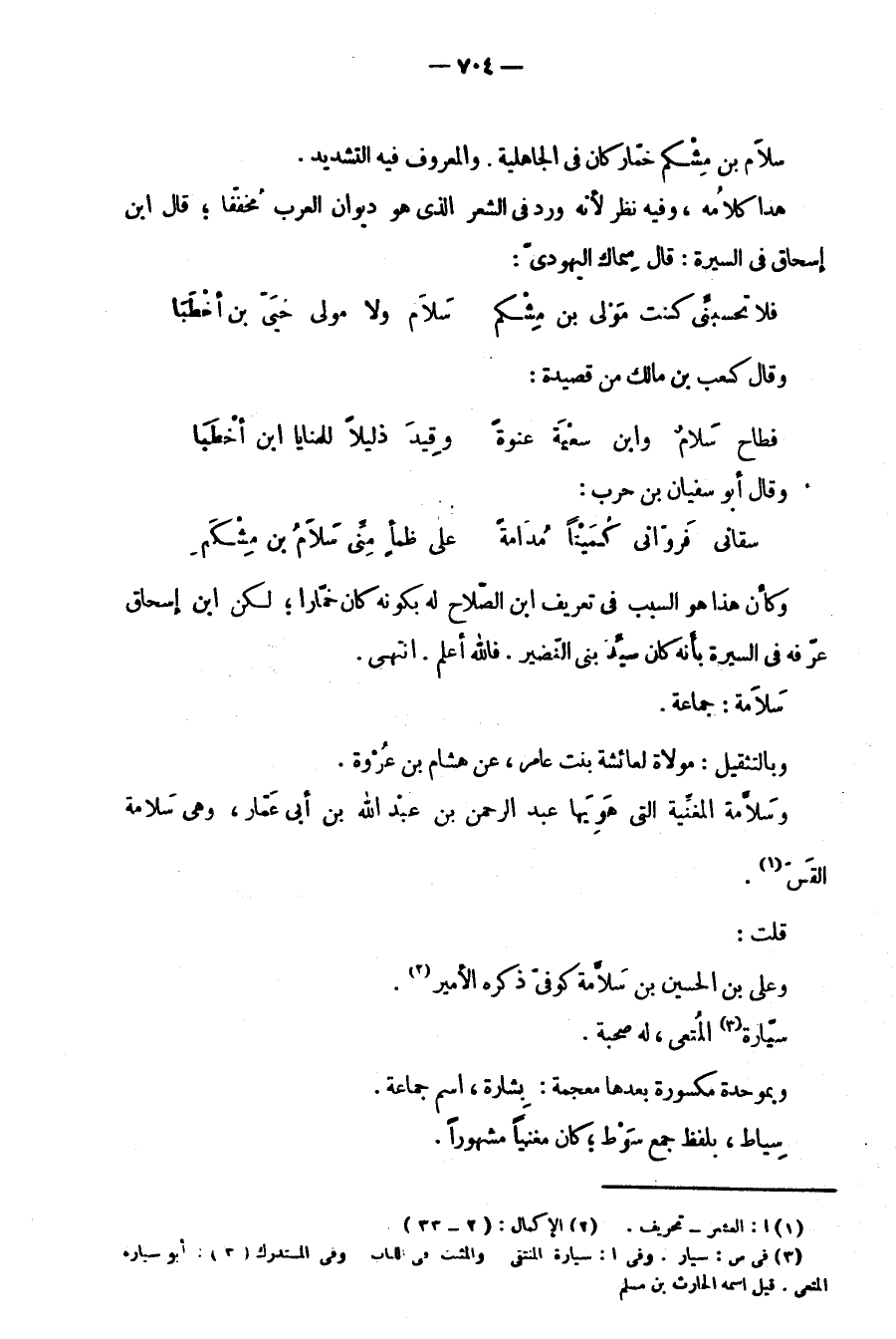 سلام بن مشكم خمار كان في الجاهلية. والمعروف فيه التشديد.