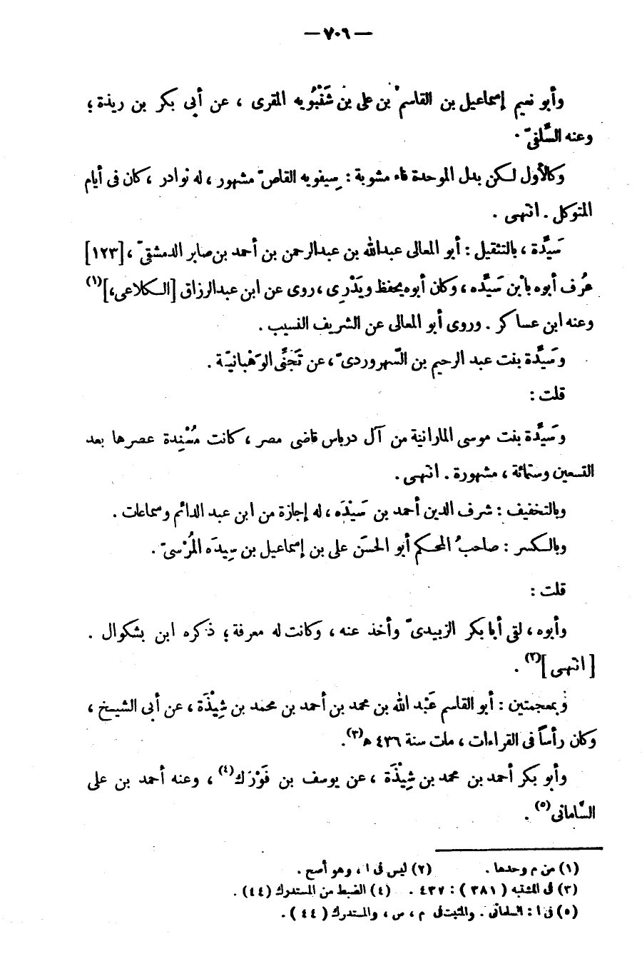 وبالكسر: صاحب المحكم أبو الحسن علي بن إسماعيل بن سيده المرسي.