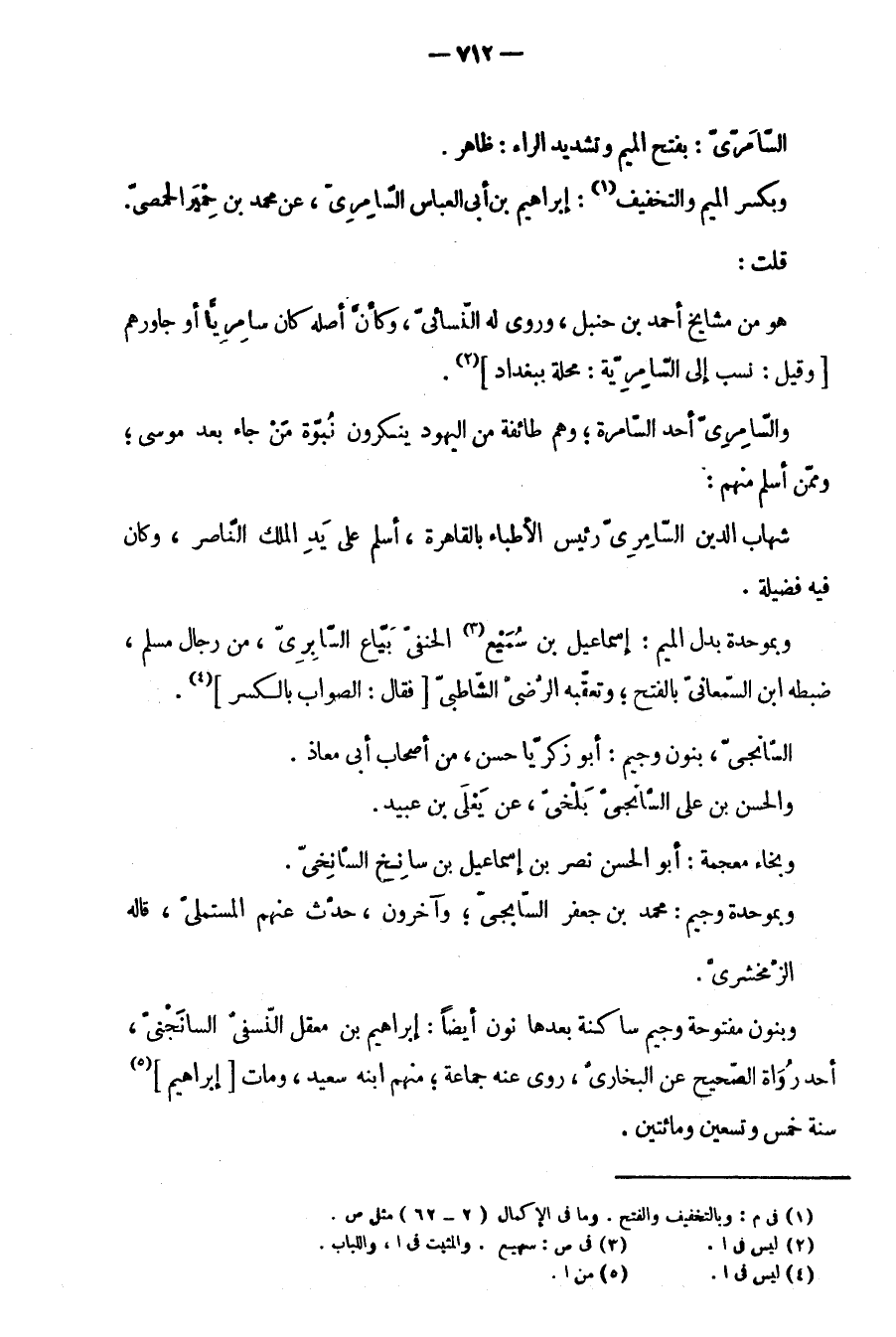 قلت: هو من مشايخ أحمد بن حنبل، وروى له النسائي، وكأن أصله كان سامرياً أو جاورهم وقيل: نسب إلى السامرية: محلة ببغداد.