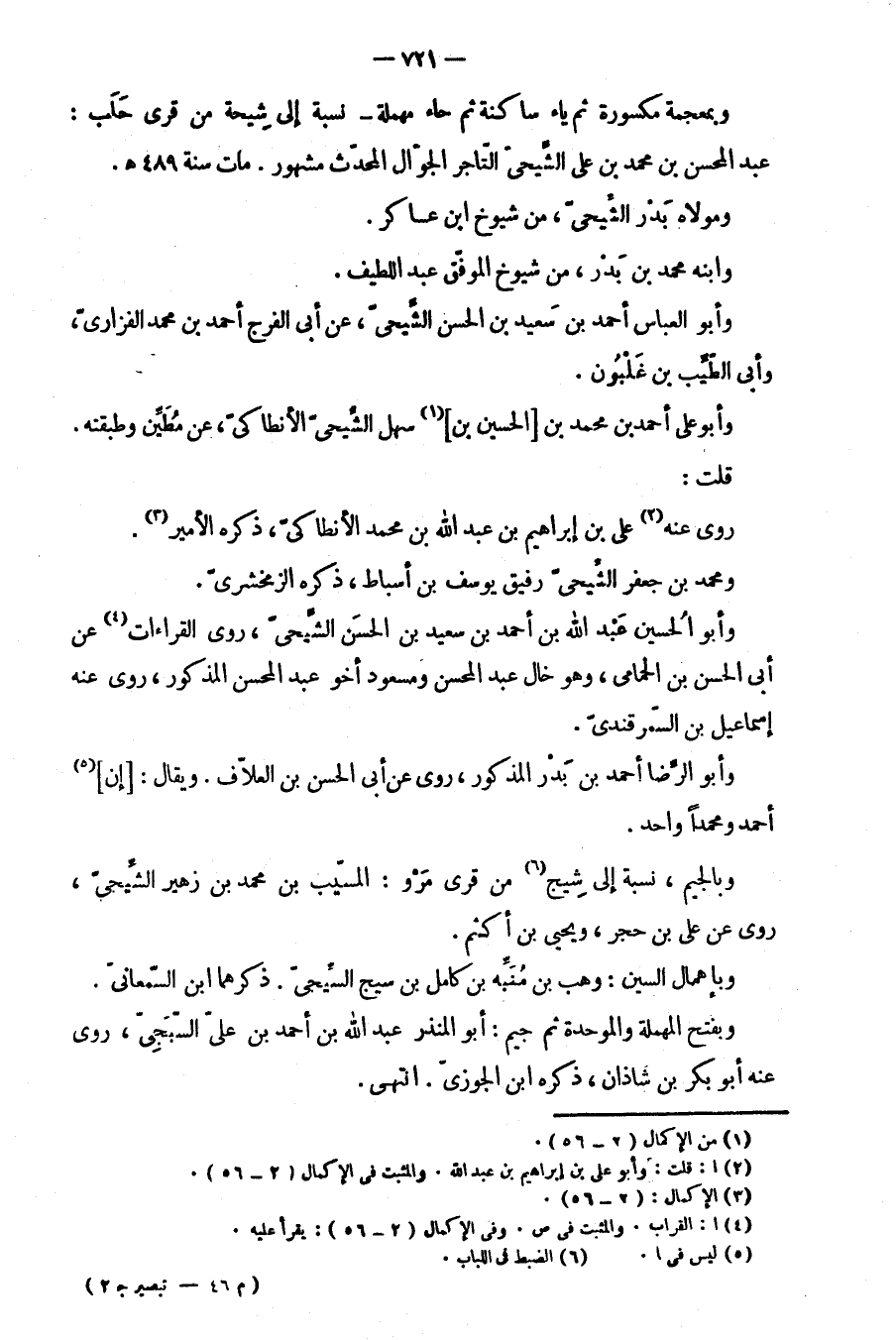 وبمعجمة مكسورة ثم ياء ساكنة ثم حاء مهملة، نسبة إلى شيحة من قرى حلب: عبد المحسن ابن محمد بن علي الشيحي التاجر الجوال المحدث مشهور. مات سنة 489 هـ.
