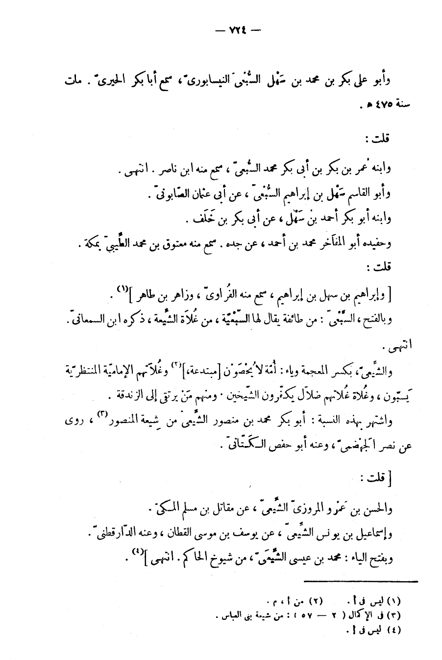 والشيعي، بكسر المعجمة وياء: أمة لا يحصون مبتدعة، وغلاتهم الإمامية المنتظرية يسبون، وغلاة غلاتهم ضلال يكفرون الشيخين. ومنهم من يرتقي إلى الزندقة.