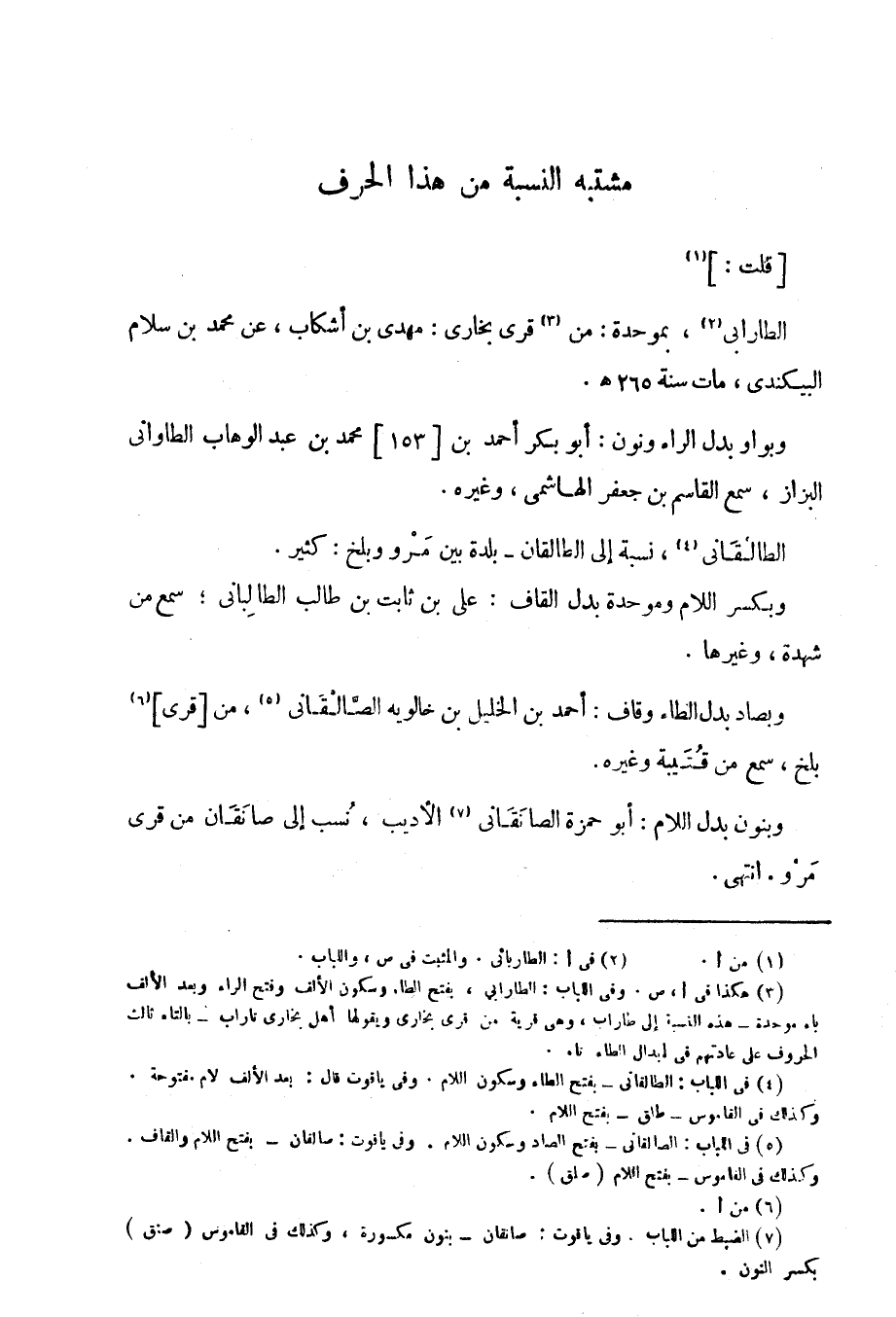قلت: الطارابي، بموحدة: من قرى بخارى: مهدي بن أشكاب، عن محمد بن سلام البيكندي، مات سنة 265.
