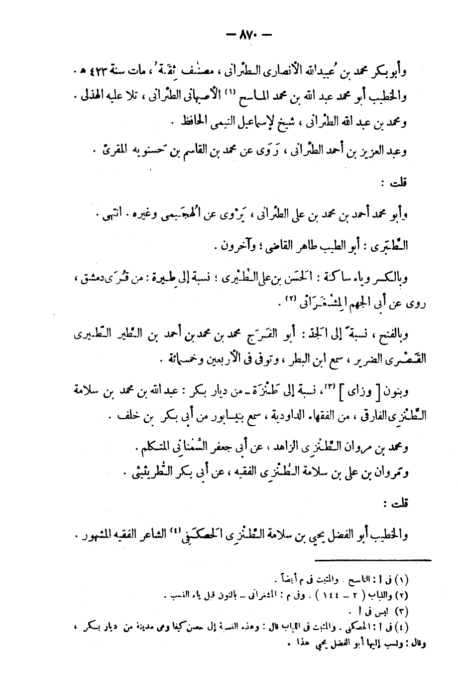 وأبو بكر محمد بن عبيد الله الأنصاري الطئراني، مصنف ثقة، مات سنة 423.