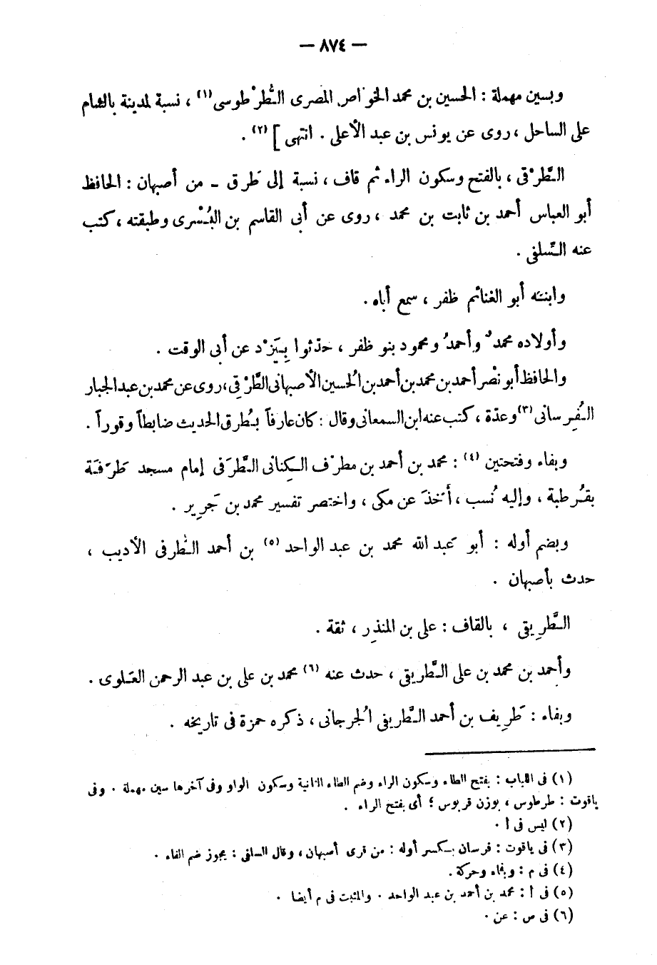 والحافظ أبو نصر أحمد بن محمد بن أحمد بن الحسين الأصبهاني الطرقي، روى عن محمد بن عبد الجبار الفرساني وعدة، كتب عنه ابن السمعاني وقال: كان عارفاً بطرق الحديث ضابطاً وقوراً.