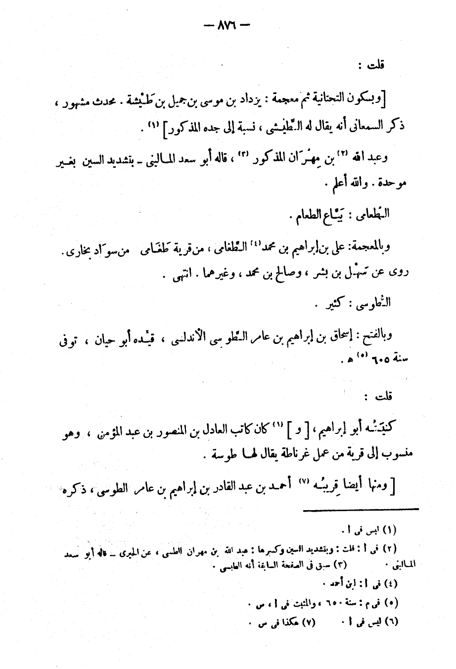 وبالفتح: إسحاق بن إبراهيم بن عامر الطوسي الأندلسي، قيده أبو حيان، توفي سنة 605هـ.