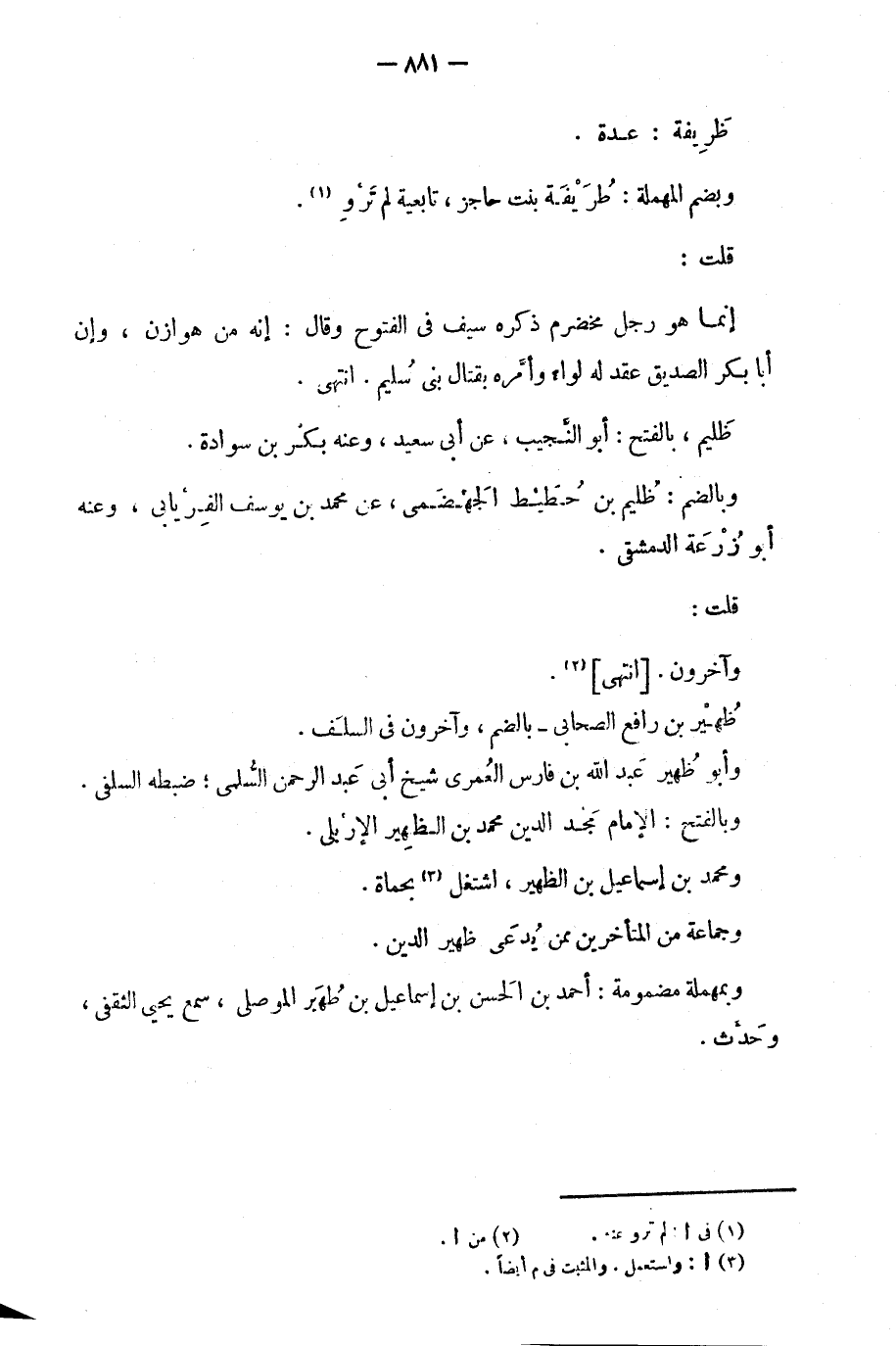 وأبو ظهير عبد الله بن فارس العمري شيخ أبي عبد ارحمن السلمي؛ ضبطه السلفي.
