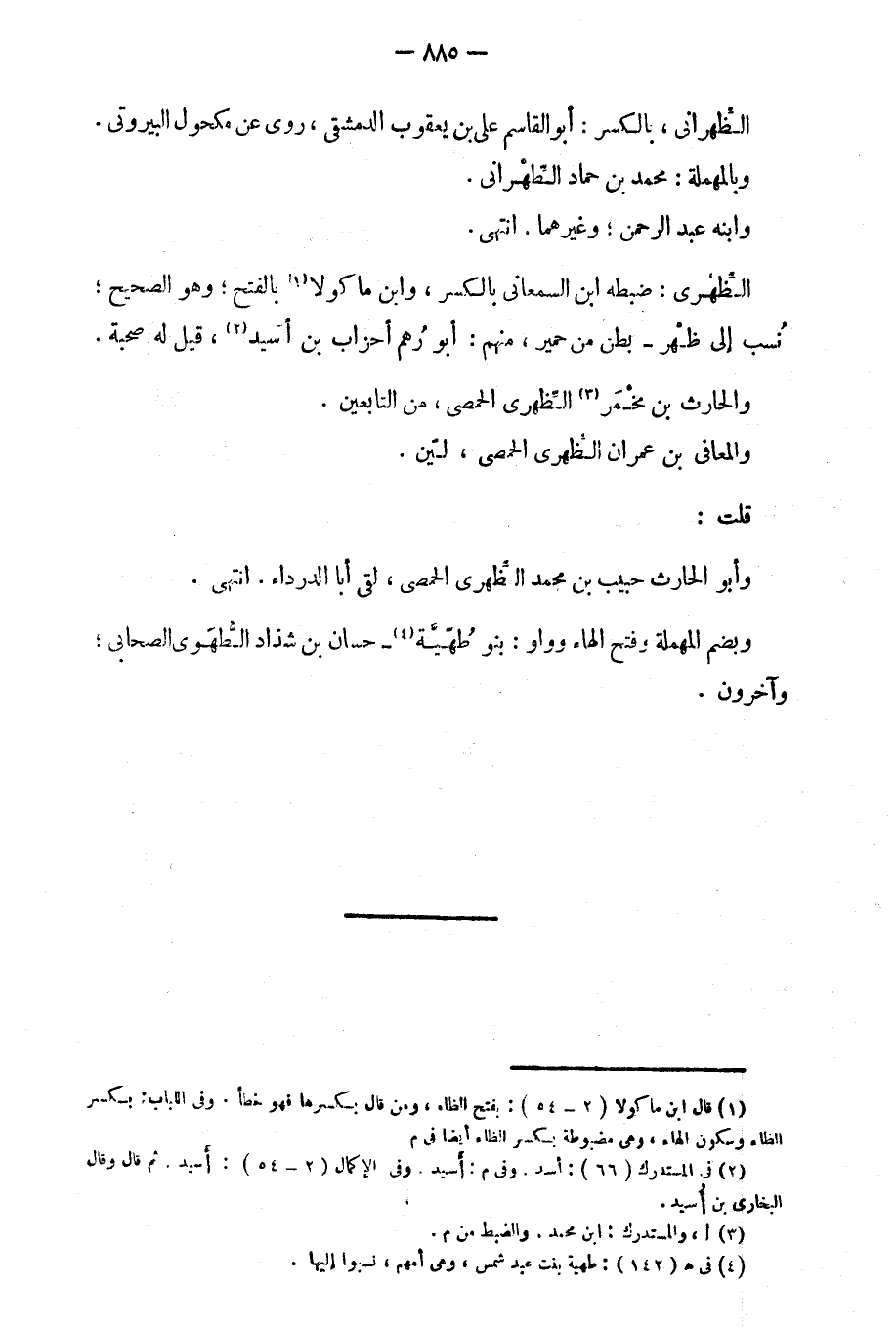 الظهري: ضبطه ابن السمعاني بالكسر، وابن ماكولا بالفتح؛ وهو الصحيح؛ نسب إلى ظهر بطن من حمير، منهم: أبو رهم أحزاب بن أسيد، قيل له صحبة.