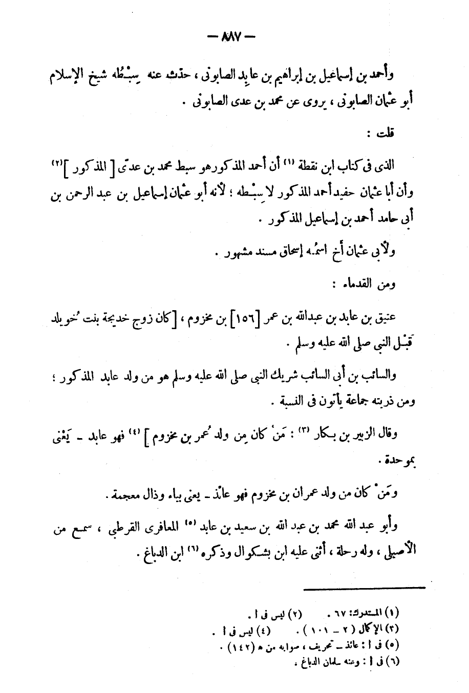 قلت: الذي في كتاب ابن نقطة أن أحمد المذكور هو سبط محمد بن عدي المذكور وأن أبا عثمان حفيد أحمد المذكور لا سبطه؛ لأنه أبو عثمان إسماعيل بن عبد الرحمن بن أبي حامد أحمد بن إسماعيل المذكور.