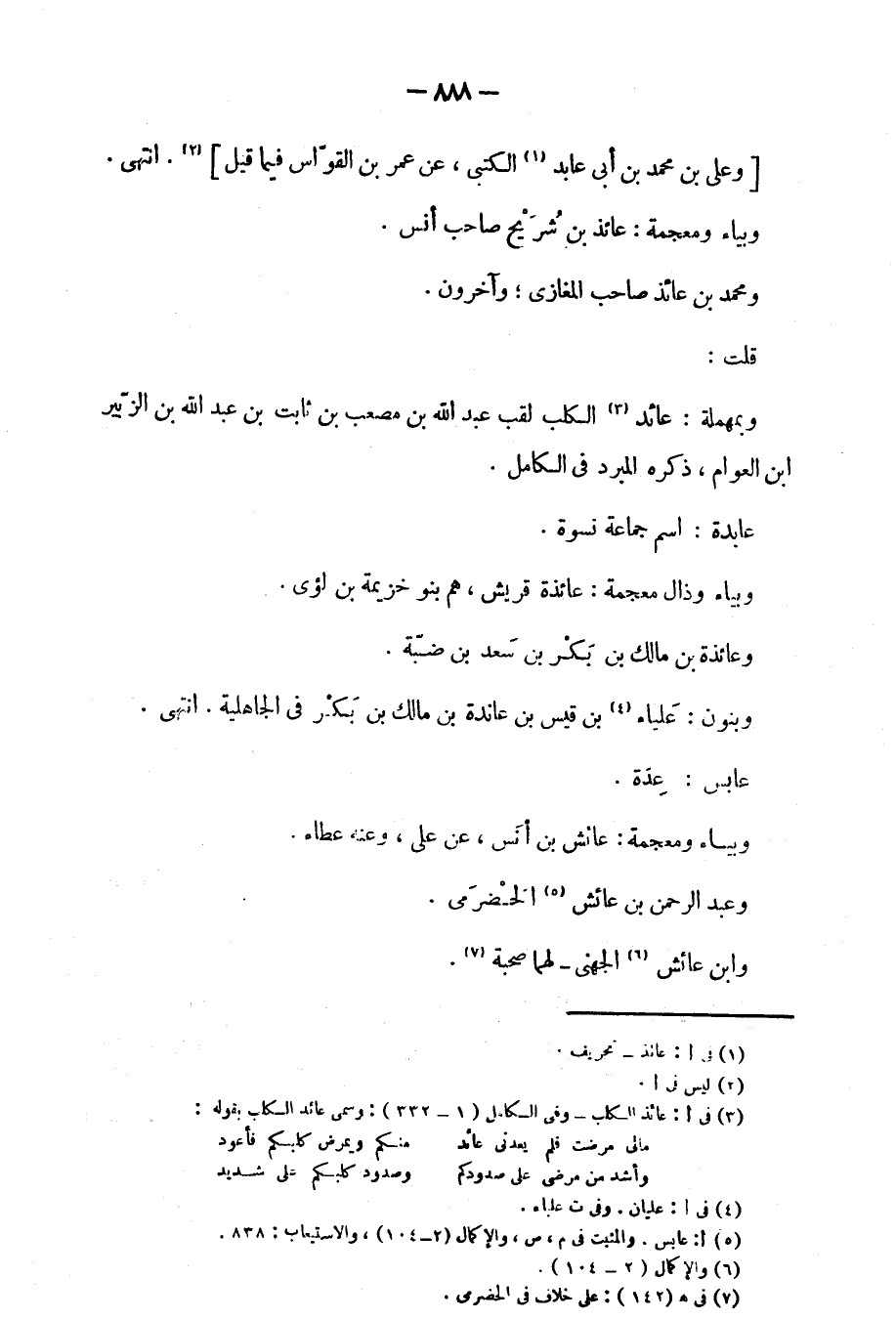 قلت: وبمهملة: عائد الكلب لقب عبد الله بن مصعب بن ثابت بن عبد الله بن الزبير ابن العوام، ذكره المبرد في الكامل.