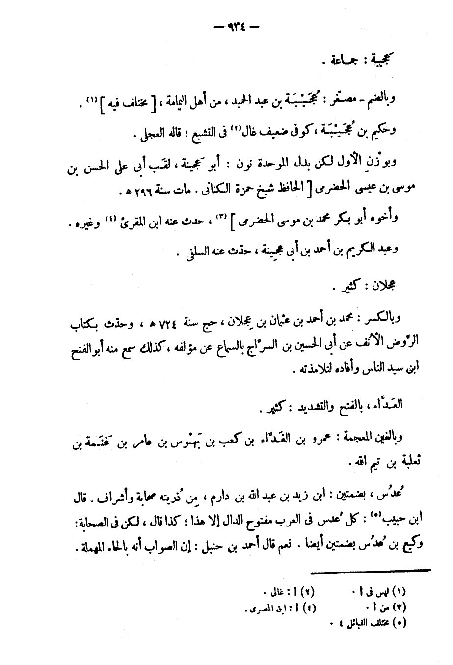 وبالكسر: محمد بن أحمد بن عثمان بن عجلان، حج سنة 724هـ، وحدث بكتاب الروض الأنف عن أبي الحسين بن السراج بالسماع عن مؤلفه، كذلك سمع منه أبو الفتح ابن سيد الناس وأفاده لتلامذته.