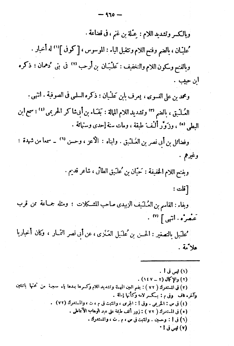 عليان، بالضم وفتح اللام وتثقيل الياء: الموسوس، كوفي له أخبار.