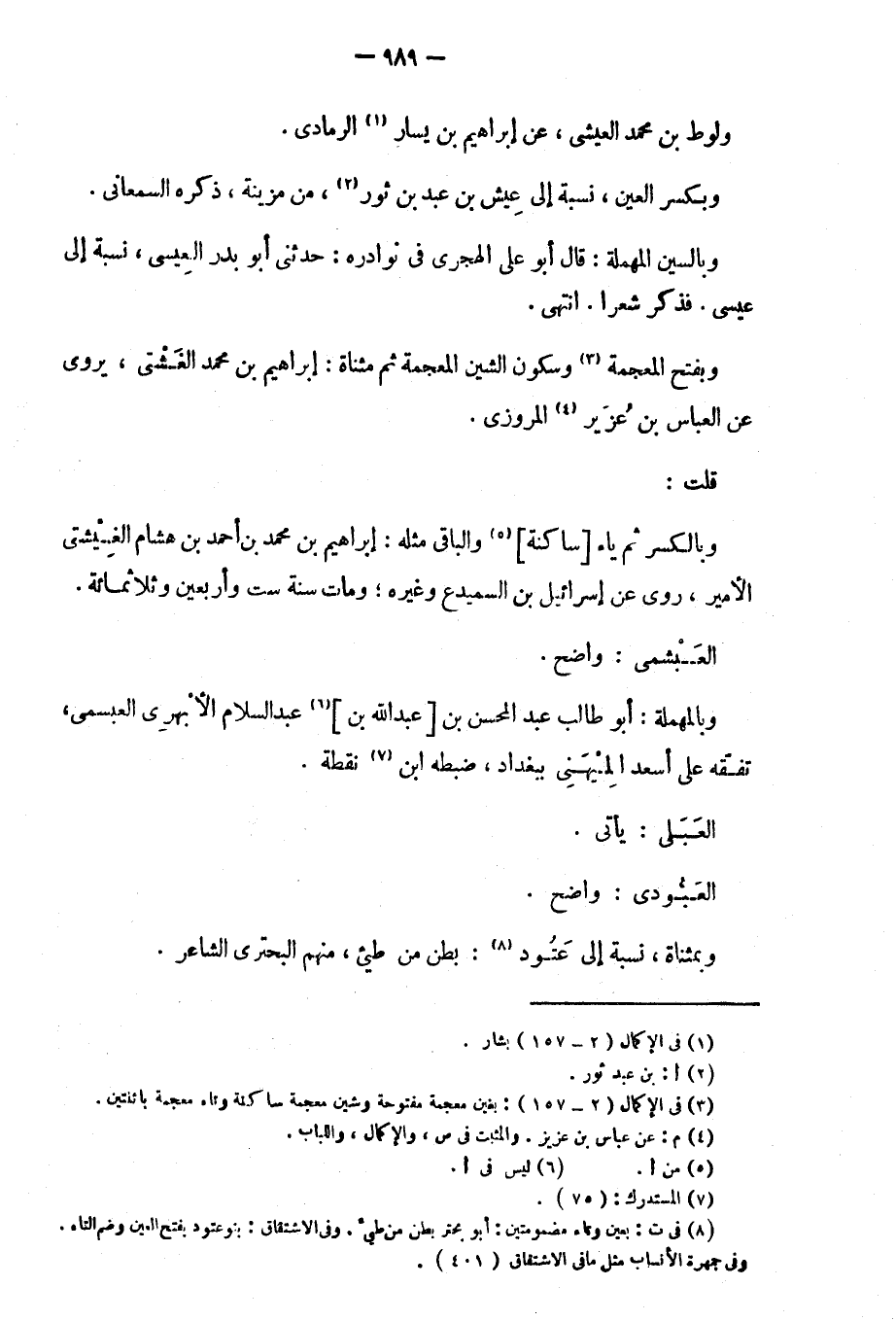 وبكسر العين؛ نسبة إلى عيش بن عبد بن ثور، من مزينة، ذكره السمعاني.