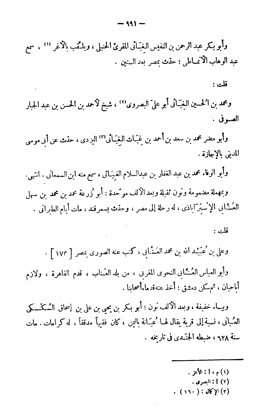 وأبو بكر عبد الرحمن بن النفيس الغياثي المقرئ الحنبلي، ويلقب بالأغر، سمع عبد الوهاب الأنماطي؛ حدث بمصر بعد الستين.