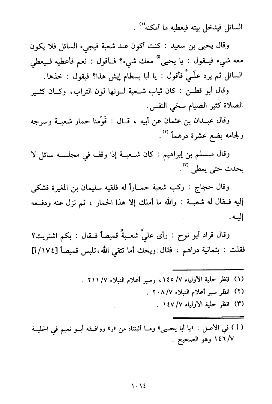 وَقَالَ قُرَادٌ أَبُو نُوحٍ: رَأَى عَلَيَّ شُعْبَةُ قَمِيصًا فَقَالَ: بِكَمِ اشْتَرَيْتَ؟ فَقُلْتُ بِثَمَانِيَةِ دَرَاهِمَ، فَقَالَ: وَيْحَكَ أمَا تَتَّقِي اللَّهَ، تَلْبَسُ قَمِيصًا