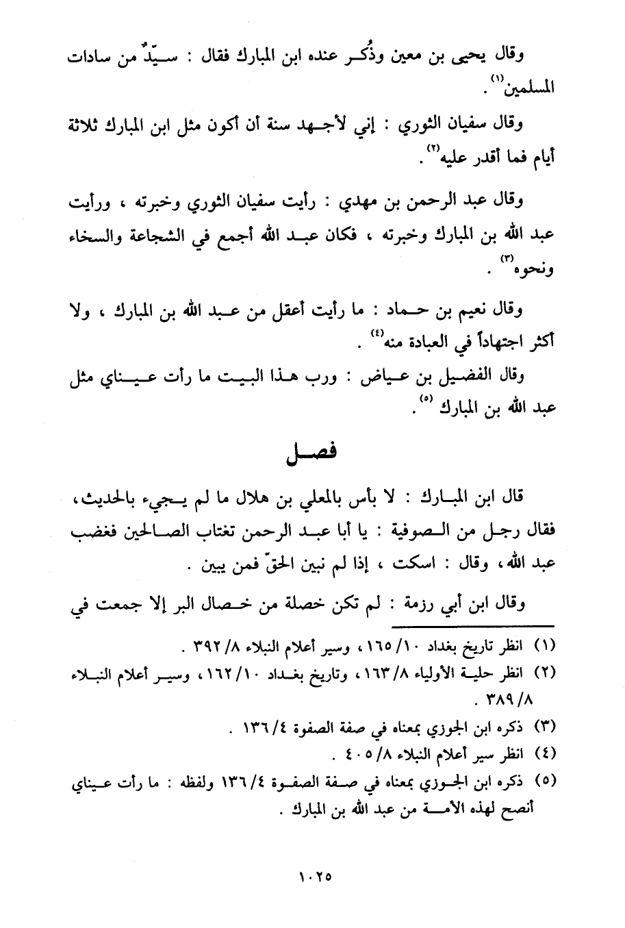 وَقَالَ سُفْيَانُ الثَّوْرِيُّ: إِنِّي لَأَجْهَدُ سَنَةَ أَنْ أَكُونَ مِثْلَ ابْنِ الْمُبَارَكِ ثَلَاثَةَ أَيَّامٍ فَمَا أَقْدِرُ عَلَيْهِ.