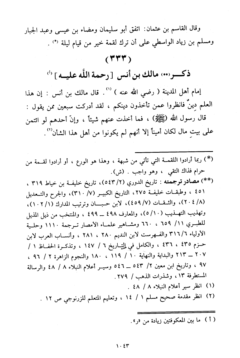 ذِكْرُ مَالِكِ بْنِ أَنَسٍ رَحْمَةُ اللَّهِ عَلَيْهِ