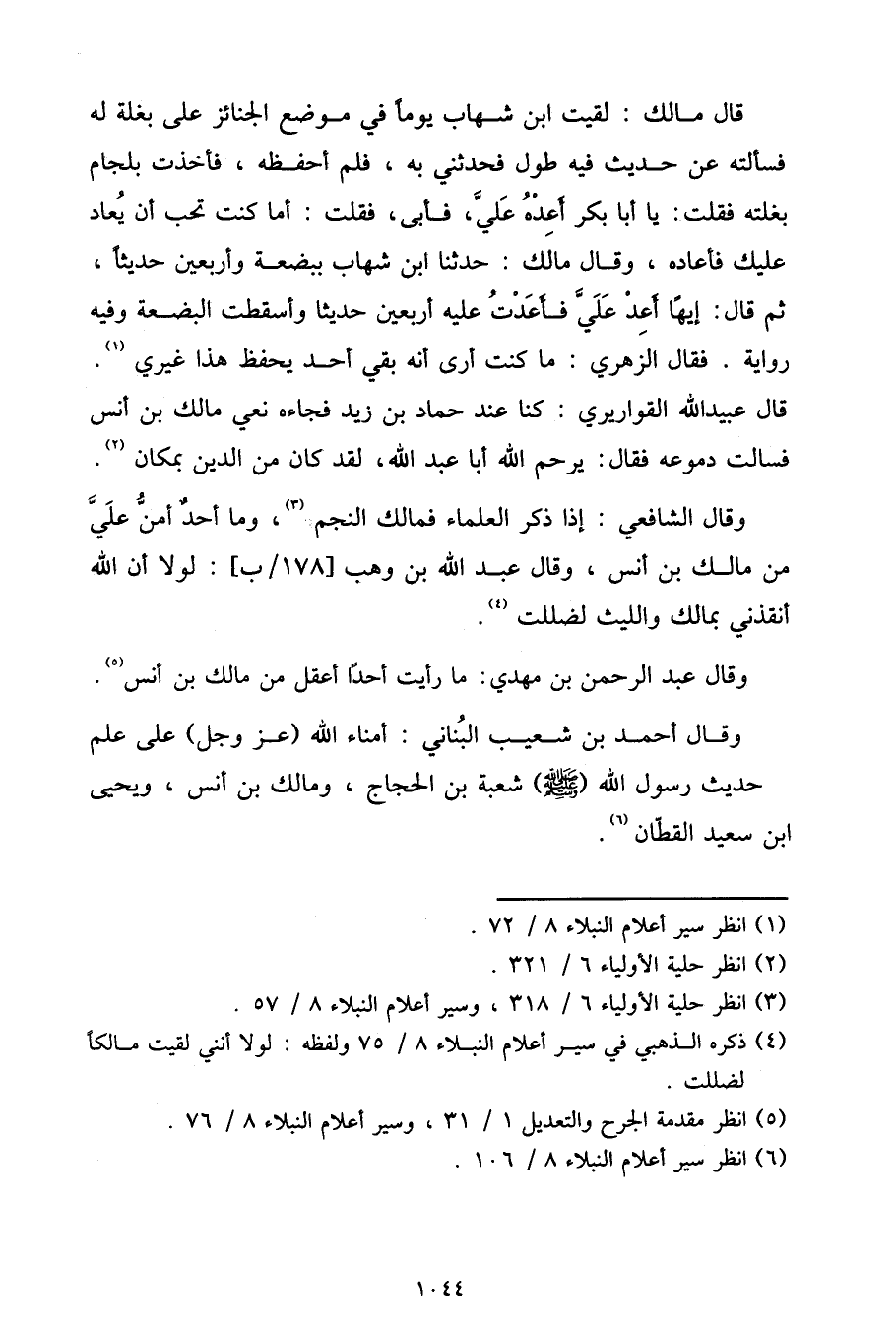 وَقَالَ الشَّافِعِيُّ: إِذَا ذُكِرَ الْعُلَمَاءُ فَمَالِكٌ النَّجْمُ، وَمَا أَحَدٌ أَمَنُّ عَلَيَّ مِنْ مَالِكِ بْنِ أَنَسٍ، وَقَالَ عَبْدُ اللَّهِ بْنُ وَهْبٍ: لَوْلَا أَنَّ اللَّهَ أَنْقَذَنِي بِمَالِكٍ , وَاللَّيْثِ لَضَلَلْتُ.