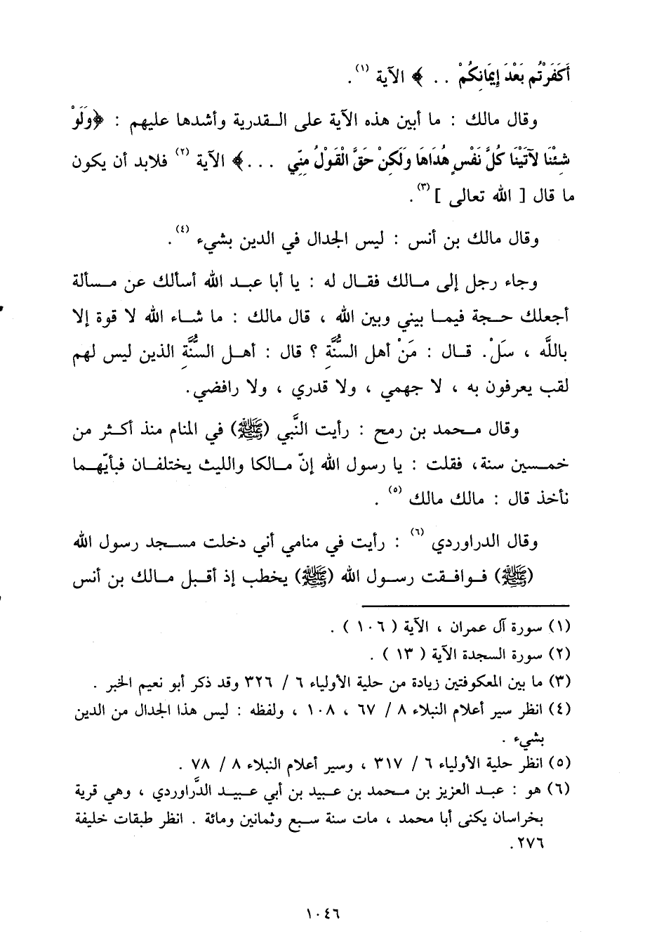 وَقَالَ مَالِكُ بْنُ أَنَسٍ: لَيْسَ الْجِدَالُ فِي الدِّينِ بِشَيْءٍ.