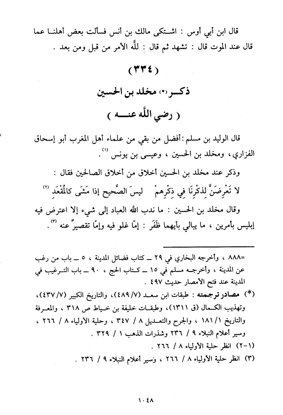 ذِكْرُ مَخْلَدِ بْنِ الْحُسَيْنِ رَضِيَ اللَّهُ عَنْهُ
