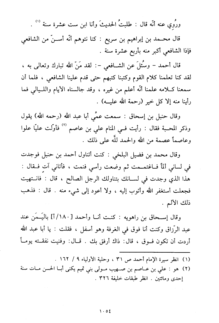 وَقَالَ حَنْبَلُ بْنُ إِسْحَاقَ: سَمِعْتُ عَمِّي أَبَا عَبْدِ اللَّهِ رَحِمَهُ اللَّهُ، يَقُولُ: وَذَكَرَ الْمَحَبَّةَ فَقَالَ: رَأَيْتُ فِي الْمَنَامِ عَلِيَّ بْنَ عَاصِمٍ، فَأَوَّلْتُ عَلِيًّا عُلُوًّا، وَعَاصِمًا عِصْمَةً مِنَ اللَّهِ، وَالْحَمْدُ لِلَّهِ عَلَى ذَلِكَ.