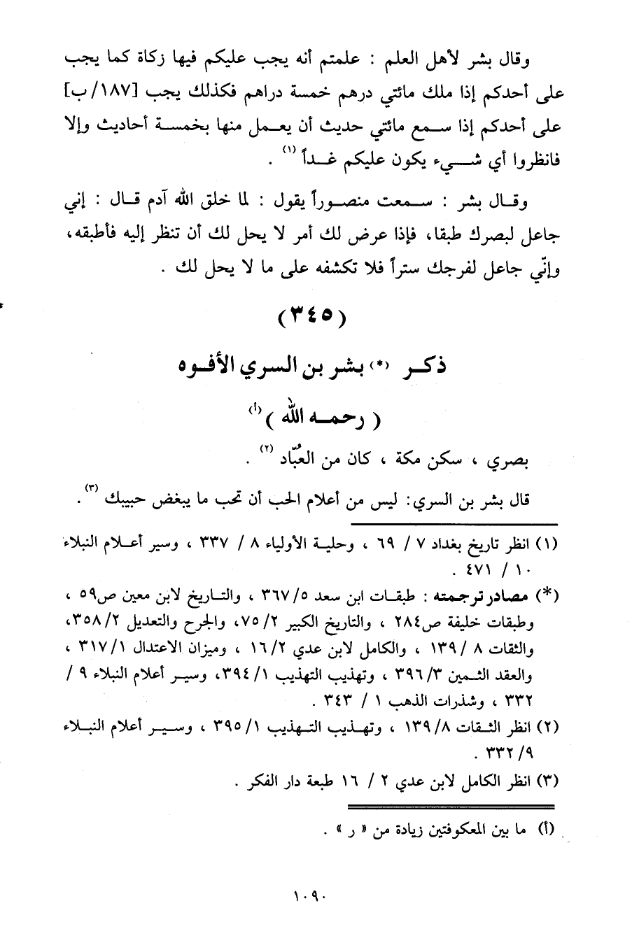 ذِكْرُ بِشْرِ بْنِ السُّرِّيِّ الْأَفْوَهِ رَحِمَهُ اللَّهُ