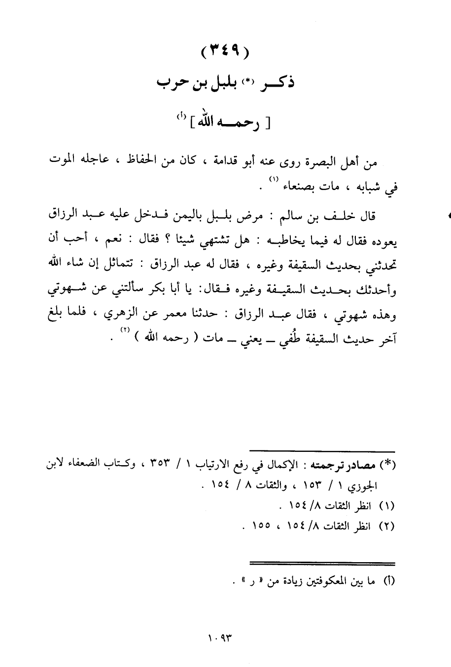 ذِكْرُ بُلْبُلِ بْنِ حَرْبٍ رَحِمَهُ اللَّهُ