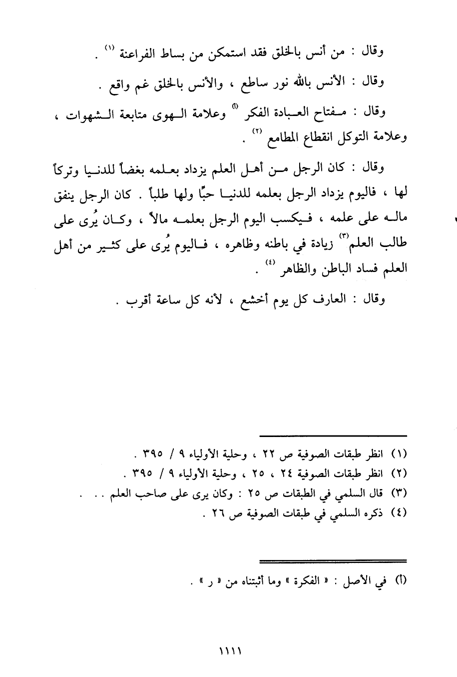 وَقَالَ: الْأُنْسُ بِاللَّهِ نُورٌ سَاطِعٌ، وَالْأُنْسُ بِالْخَلْقِ غَمٌّ وَاقِعٌ.