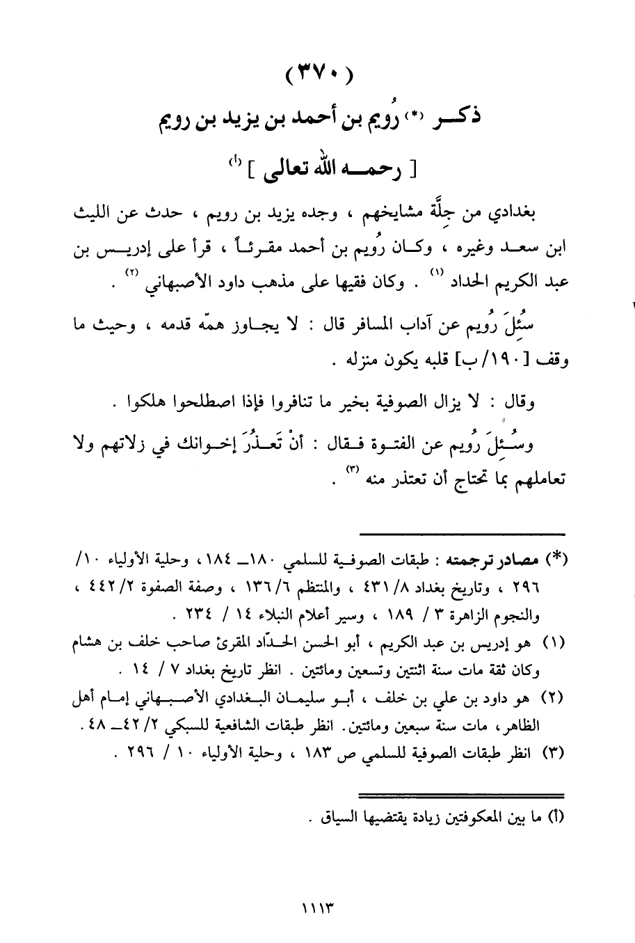 ذِكْرُ رُوَيْمِ بْنِ أَحْمَدَ بْنِ يَزِيدَ بْنِ رُوَيْمٍ رَحِمَهُ اللَّهُ تَعَالَى