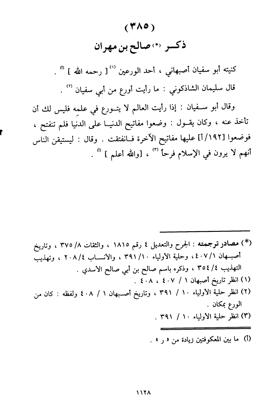 ذِكْرُ صَالِحِ بْنِ مَهْرَانَ، كُنْيَتُهُ أَبُو سُفْيَانَ أَصْبَهَانِيٌّ