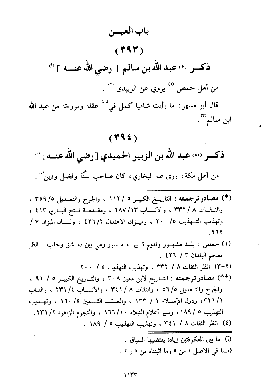 ذِكْرُ عَبْدِ اللَّهِ بْنِ الزُّبَيْرِ الْحُمَيْدِيِّ رَضِيَ اللَّهُ عَنْهُ