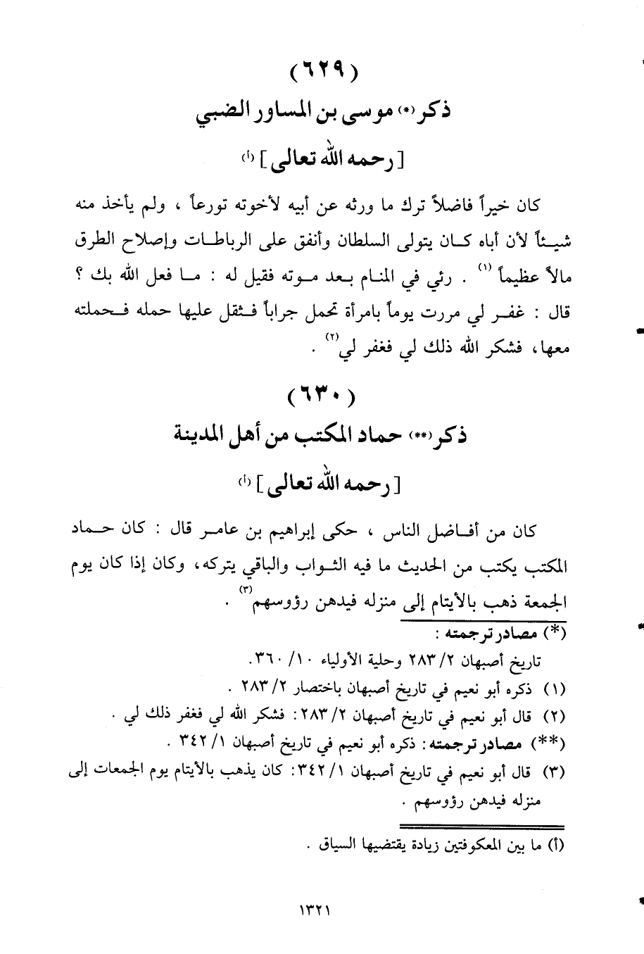 ذِكْرُ مُوسَى بْنُ الْمُسَاوِرِ الضَّبِّيِّ رَحِمَهُ اللَّهُ تَعَالَى