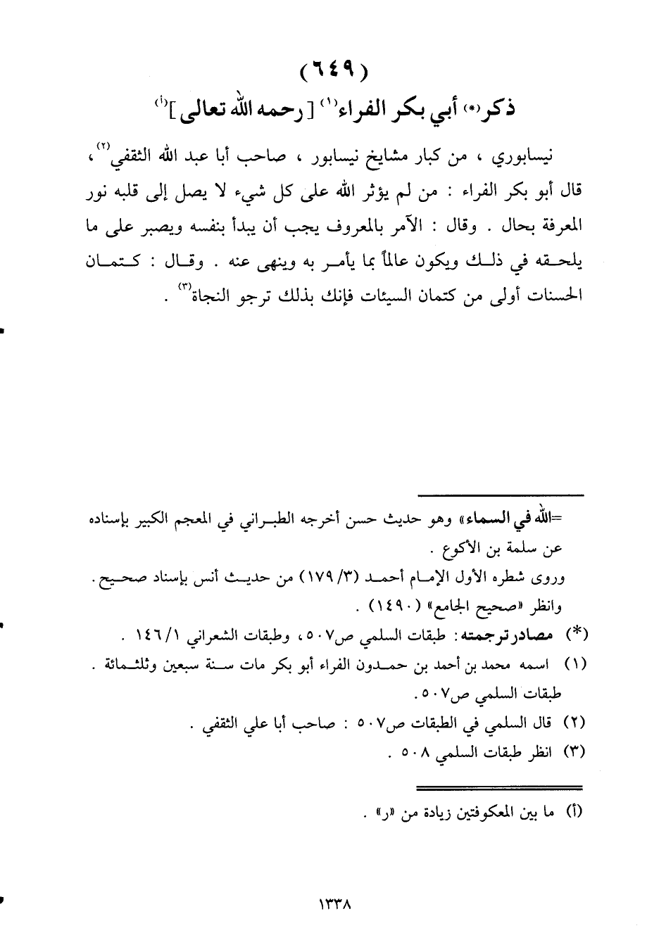 ذِكْرُ أَبِي بَكْرٍ الْفَرَاءِ رَحِمَهُ اللَّهُ تَعَالَى