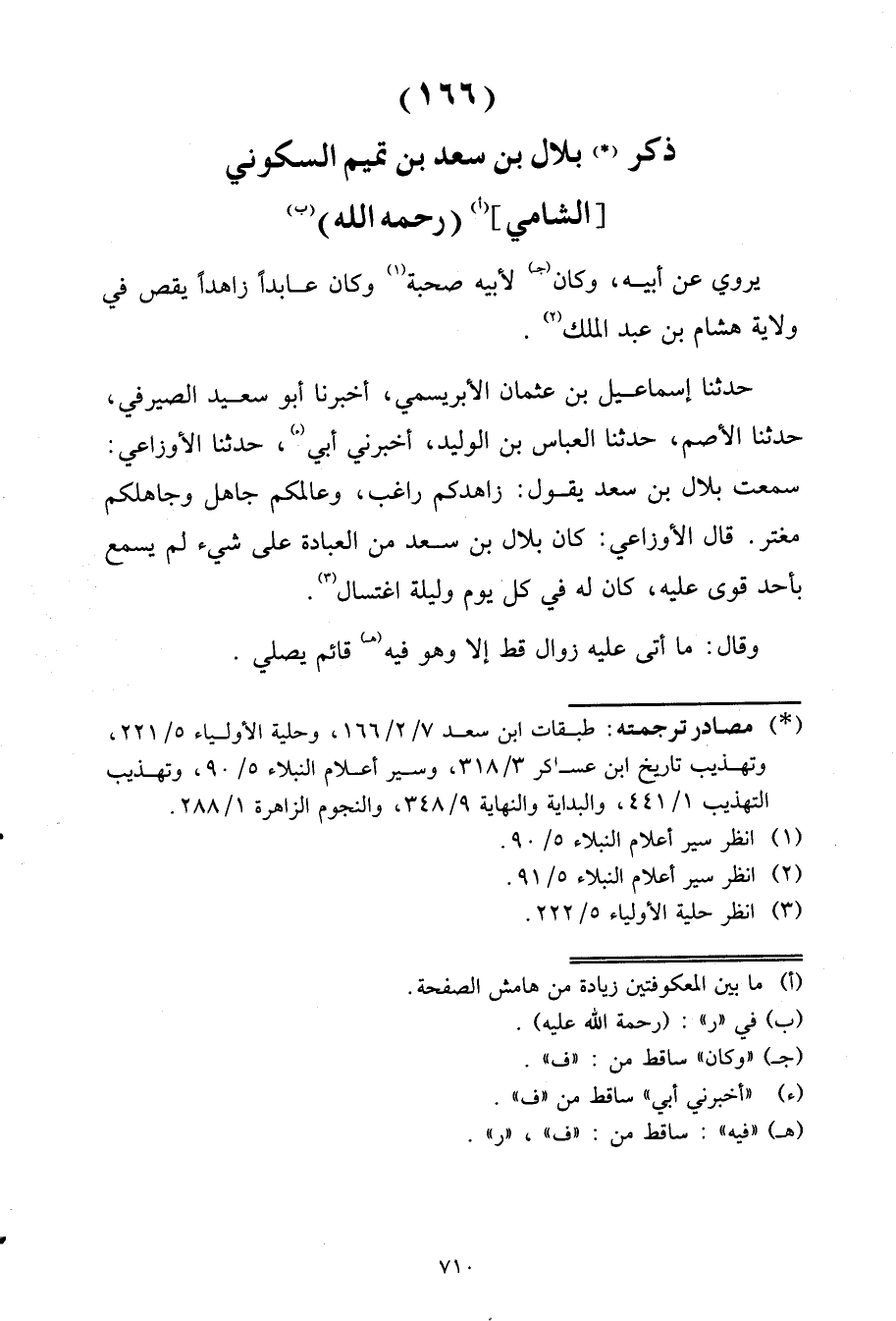 ذِكْرُ بِلَالِ بْنِ سَعْدِ بْنِ تَمِيمٍ السُّكُونِيِّ الشَّامِيِّ رَحِمَهُ اللَّهُ