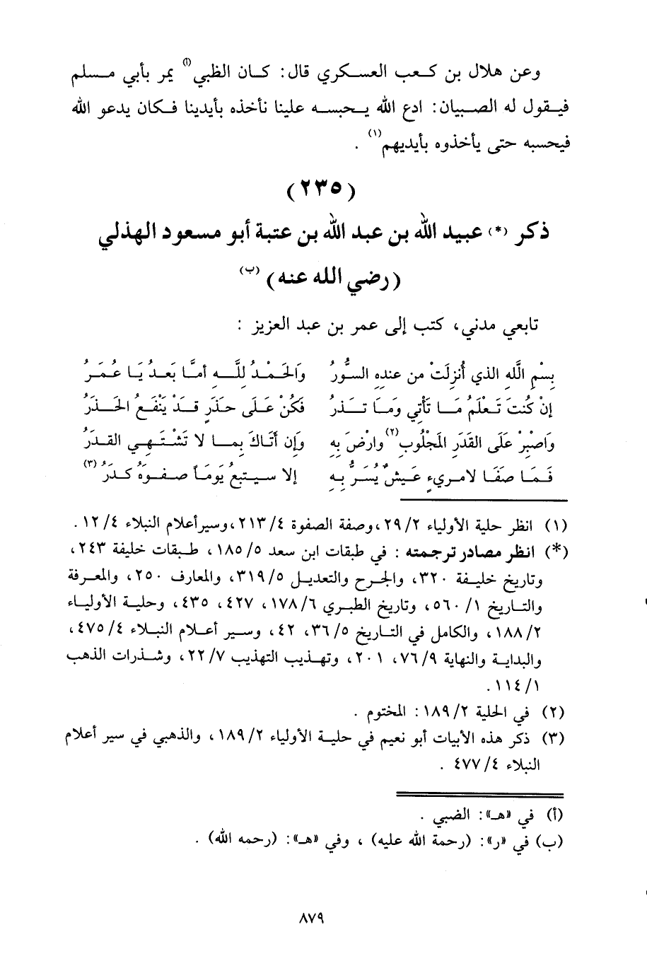 ذِكْرُ عُبَيْدِ اللَّهِ بْنِ عَبْدِ اللَّهِ بْنِ عُتْبَةَ أَبُو مَسْعُودٍ الْهُذَلِيُّ رَضِيَ اللَّهُ عَنْهُ