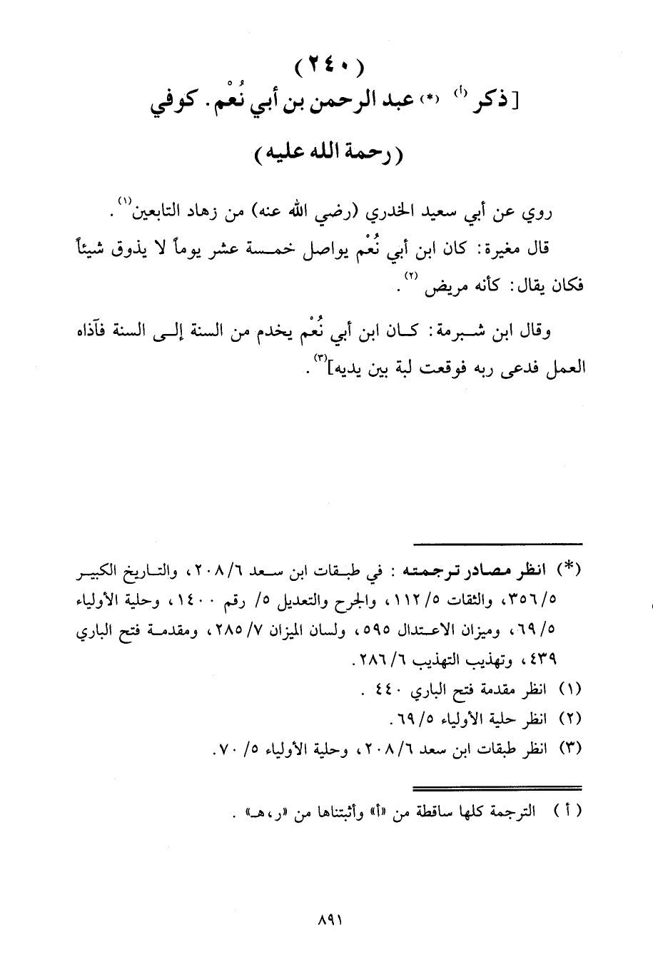 ذِكْرِ عَبْدِ الرَّحْمَنِ بْنِ أَبِي نُعْمٍ كُوفِيٌّ رَحْمَةُ اللَّهِ عَلَيْهِ