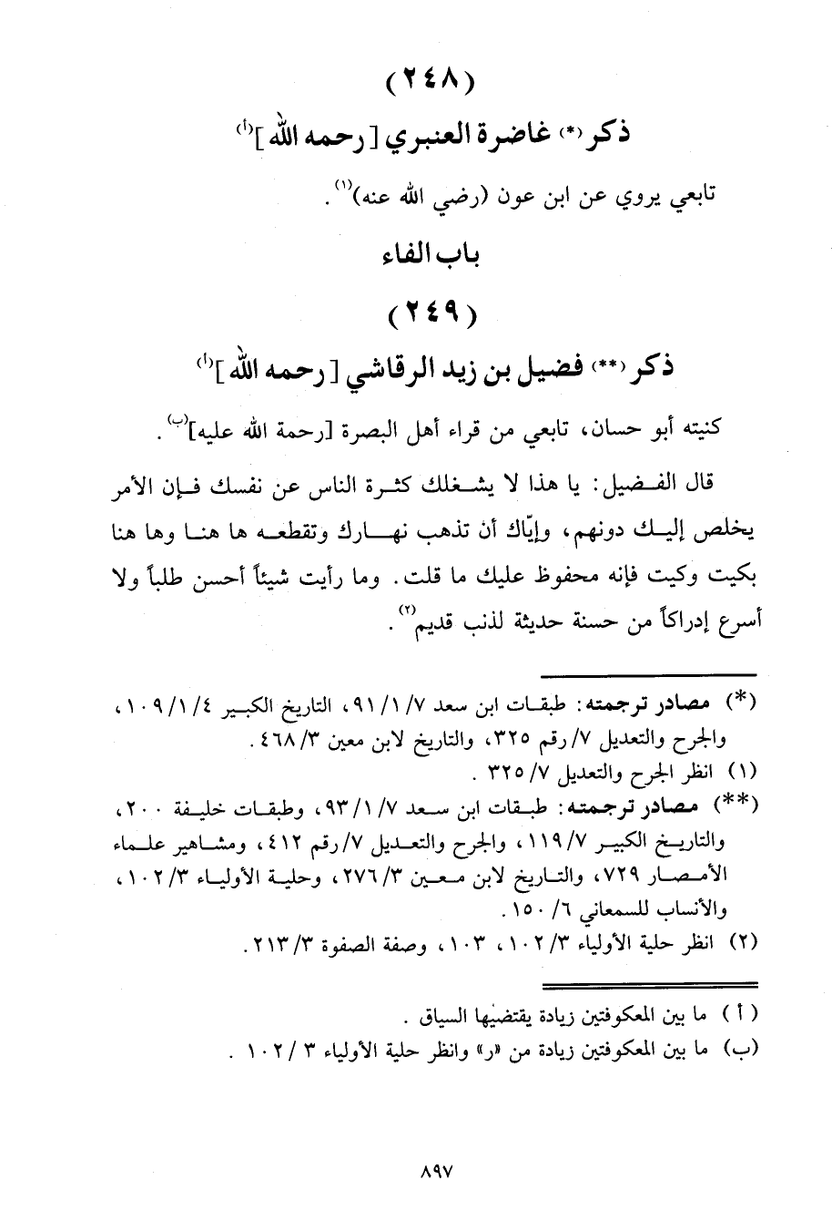 ذِكْرُ فُضَيْلِ بْنِ زَيْدٍ الرَّقَاشِيِّ رَحِمَهُ اللَّهُ، كُنْيَتُهُ أَبُو حَسَّانٍ