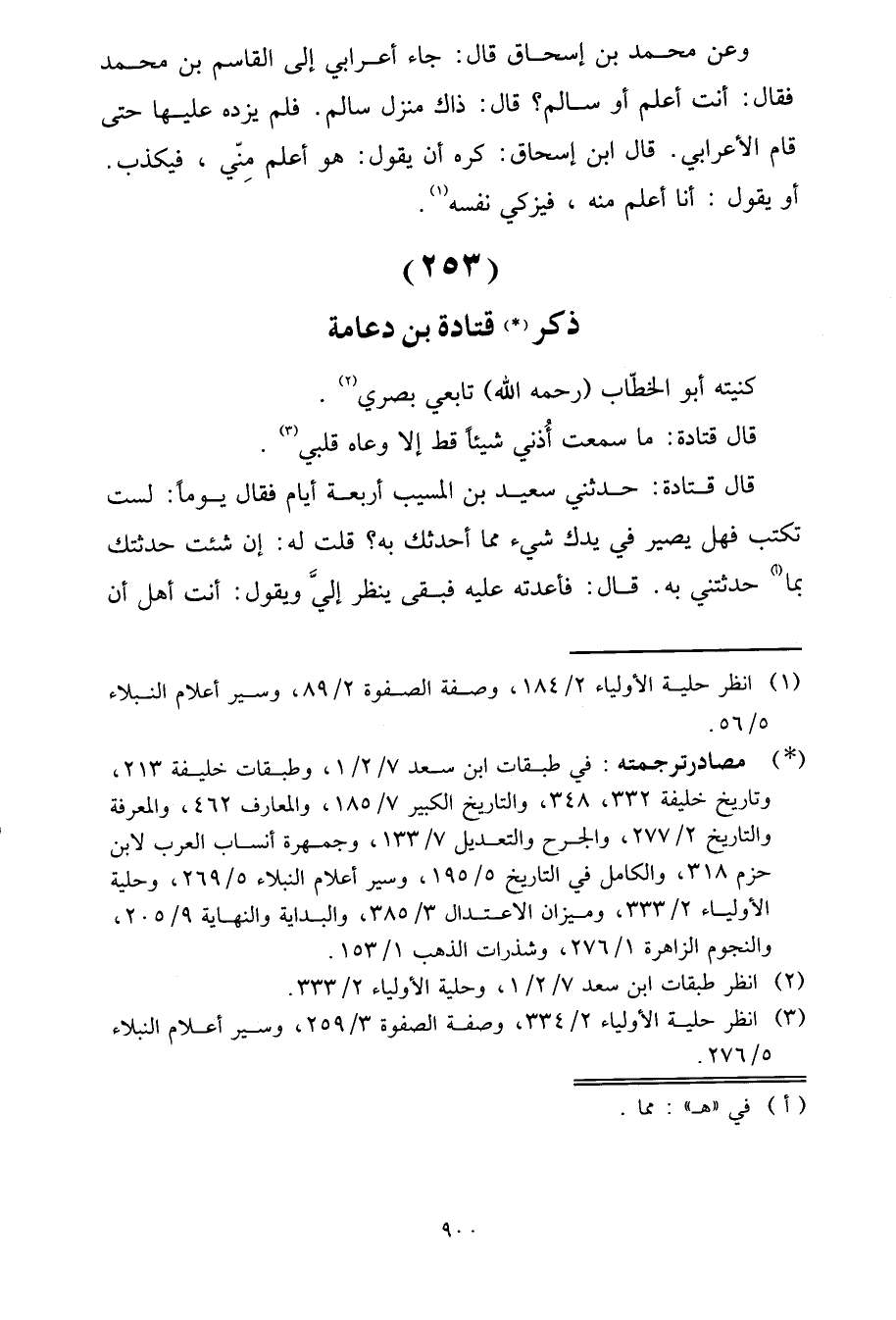 ذِكْرُ قَتَادَةَ بْنِ دُعَامَةَ، كُنْيَتُهُ أَبُو الْخَطَّابِ رَحِمَهُ اللَّهُ