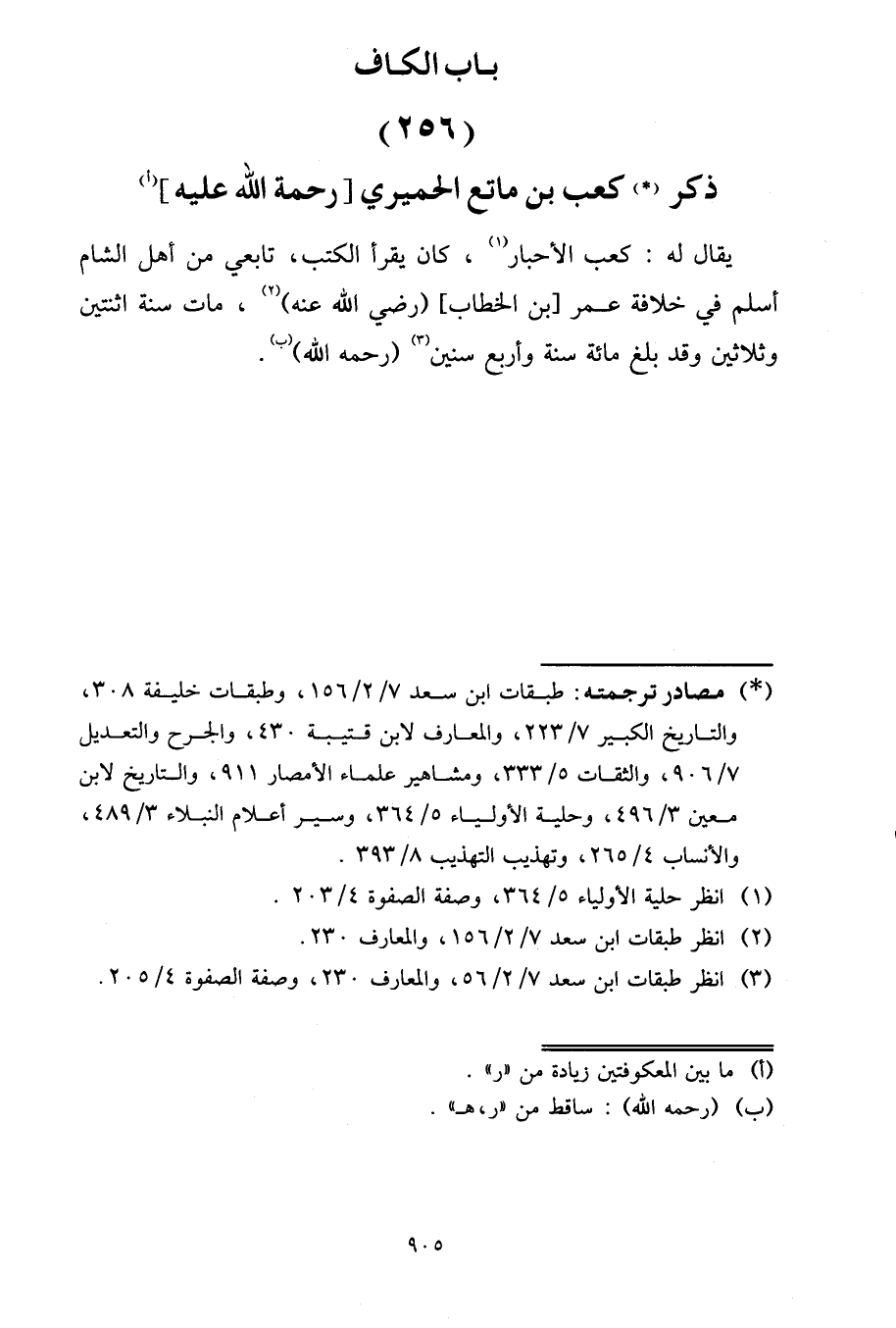 يُقَالُ لَهُ كَعْبَ الْأَحْبَارِ، كَانَ يَقْرَأُ الْكُتُبَ، تَابِعِيٌّ مِنْ أَهْلِ الشَّامِ، أَسْلَمَ فِي خِلَافَةِ عُمَرَ بْنِ الْخَطَّابِ رَضِيَ اللَّهُ عَنْهُ، مَاتَ سَنَةَ اثْنَتَيْنِ وَثَلَاثِينَ , وَقَدْ بَلَغَ مِائَةَ سَنَةٍ وَأَرْبَعَ سِنِينَ رَحِمَهُ اللَّهُ.