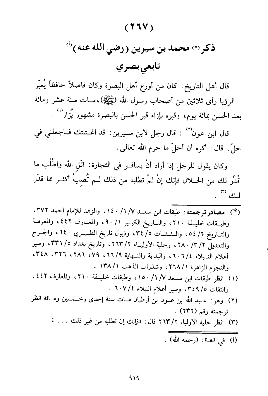 ذِكْرُ مُحَمَّدِ بْنِ سِيرِينَ رَضِيَ اللَّهُ عَنْهُ تَابِعِيٌّ بَصْرِيٌّ