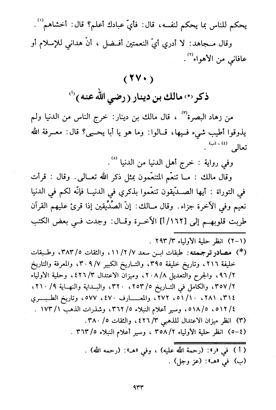 ذِكْرُ مَالِكِ بْنِ دِينَارٍ رَضِيَ اللَّهُ عَنْهُ