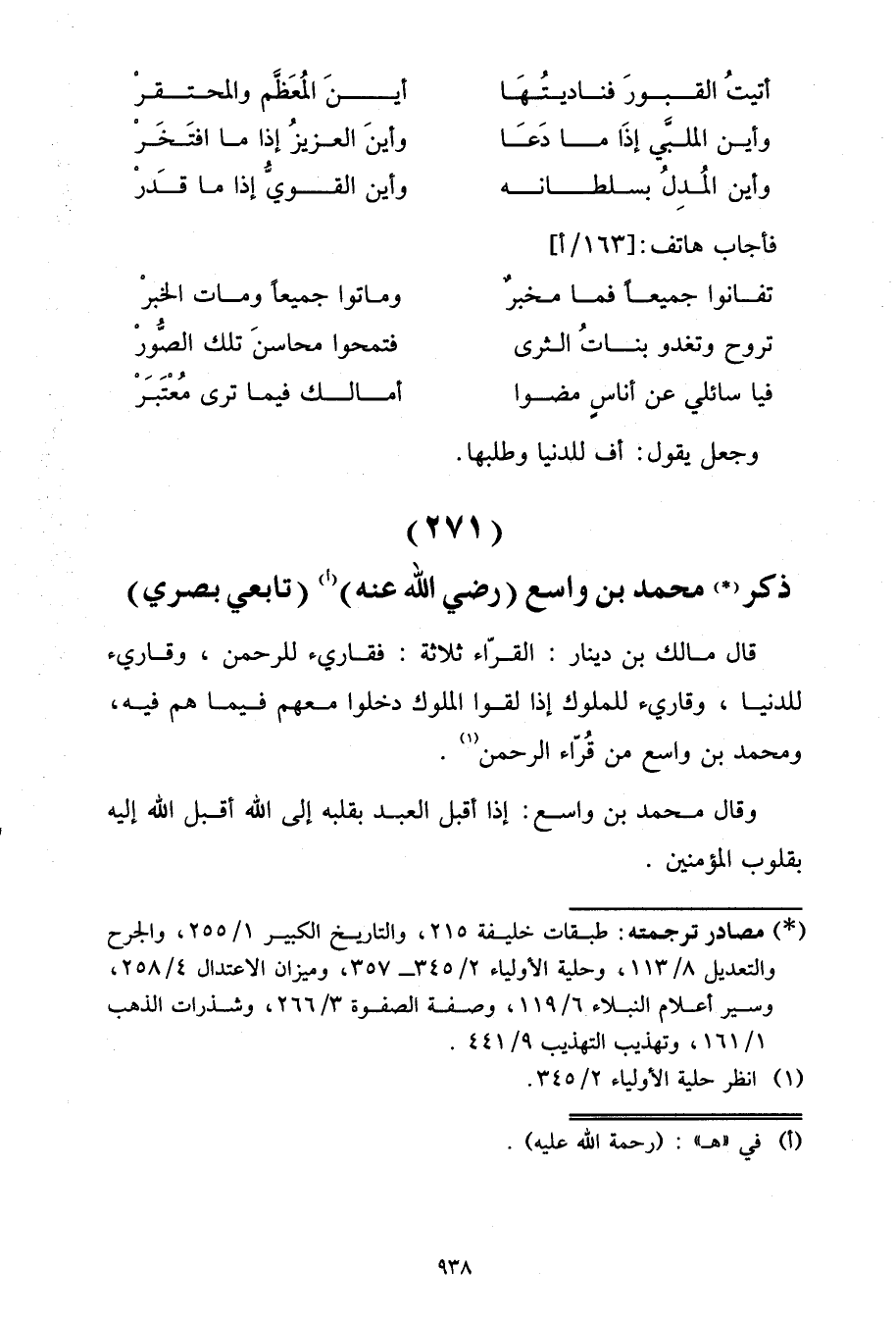 وَقَالَ مُحَمَّدُ بْنُ وَاسِعٍ: إِذَا أَقْبَلَ الْعَبْدُ بِقَلْبِهِ إِلَى اللَّهِ أَقْبَلَ اللَّهُ إِلَيْهِ بِقُلُوبِ الْمُؤْمِنِينَ.