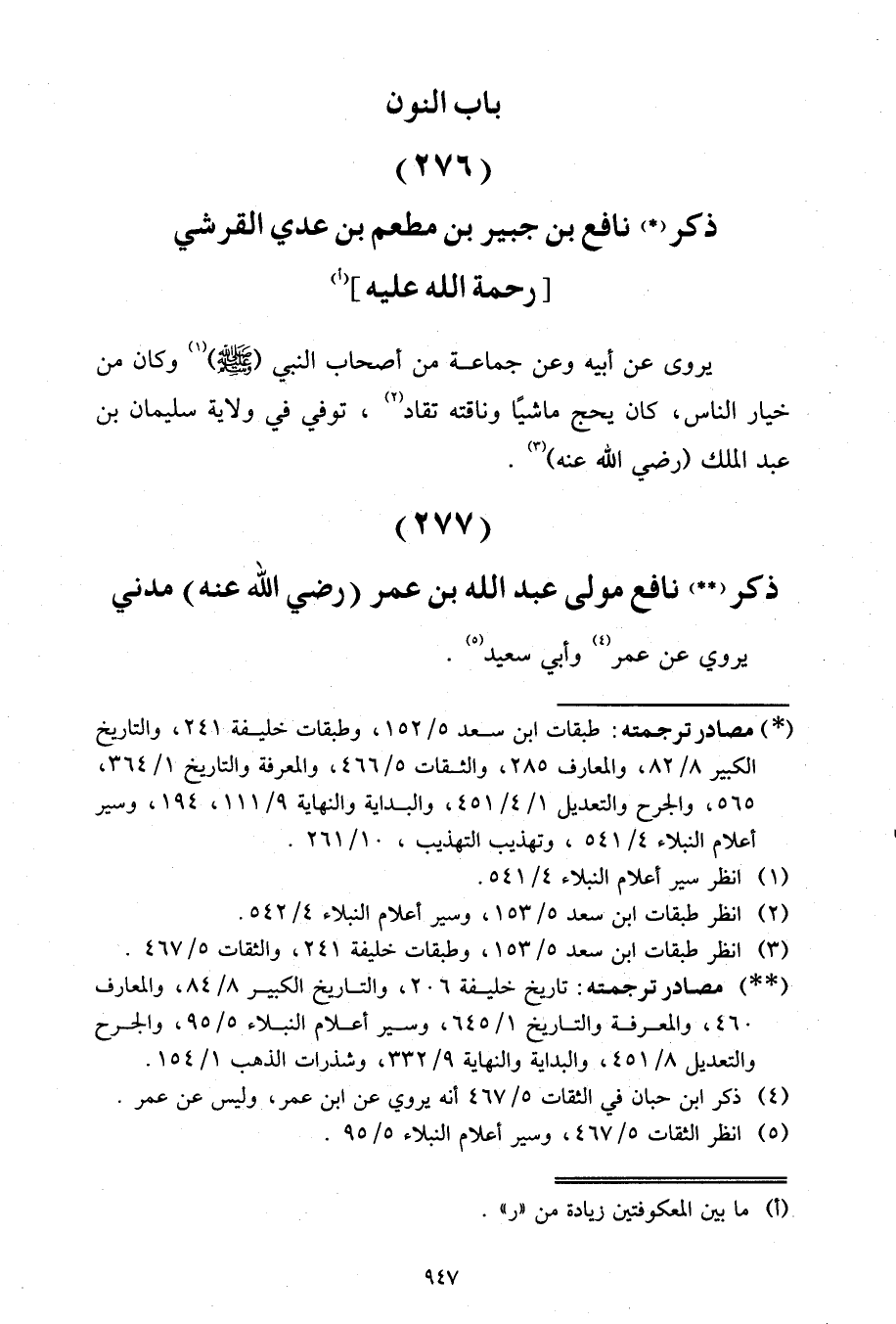 ذِكْرُ نَافِعِ بْنِ جُبَيْرِ بْنِ مُطْعَمِ بْنِ عَدِيٍّ الْقُرَشِيِّ رَحْمَةُ اللَّهِ عَلَيْهِ