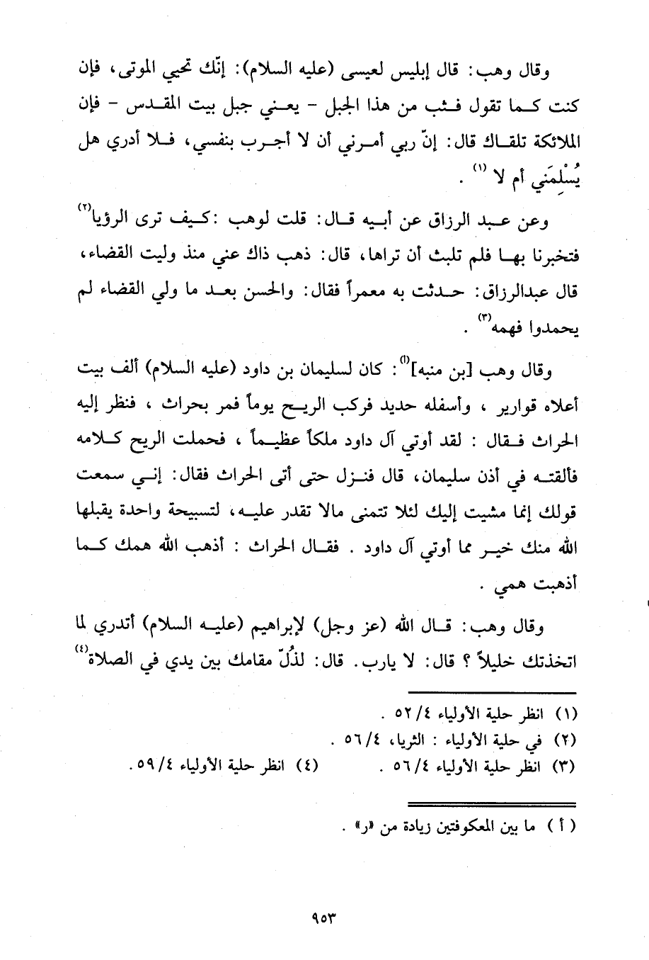 وَقَالَ وَهْبٌ: قَالَ إِبْلِيسُ لِعِيسَى عَلَيْهِ السَّلَامُ: إِنَّكَ تُحْيِي الْمَوْتَى، فَإِنْ كُنْتَ كَمَا تَقُولُ فَثِبْ مِنْ هَذَا الْجَبَلِ، يَعْنِي جَبَلَ بَيْتِ الْمَقْدِسِ، فَإِنَّ الْمَلَائِكَةَ تَلْقَاكَ قَالَ: إِنَّ رَبِّي أَمَرَنِي أَنْ لَا أُجَرِّبَ بِنَفْسِي، فَلَا أَدْرِي هَلْ يُسْلِمُنِي أَمْ لَا.
