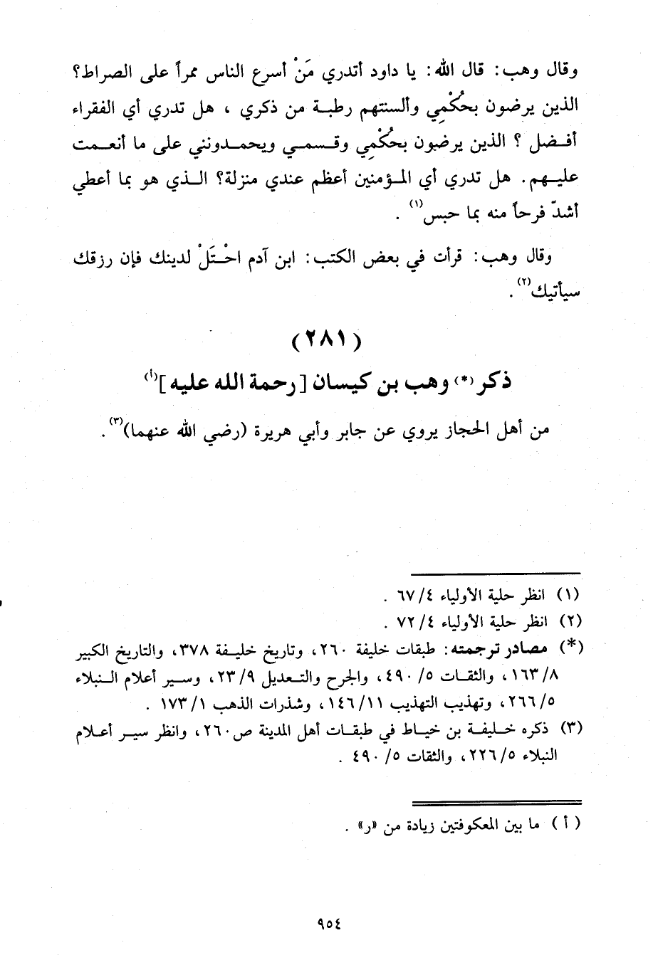 وَقَالَ وَهْبٌ: قَالَ اللَّهُ: «يَا دَاوُدُ أَتَدْرِي مَنْ أَسْرَعُ النَّاسِ مَمَرًّا عَلَى الصِّرَاطِ؟ الَّذِينَ يَرْضَوْنَ بِحُكْمِي وَأَلْسِنَتُهُمْ رَطْبَةٌ مِنْ ذِكْرِي، هَلْ تَدْرِي أَيُّ الْفُقَرَاءِ أَفْضَلُ؟ الَّذِينَ يَرْضَوْنَ بِحُكْمِي وَقَسْمِي وَيْحَمُدونَنِي عَلَى مَا أَنْعَمْتُ عَلَيْهِمْ.