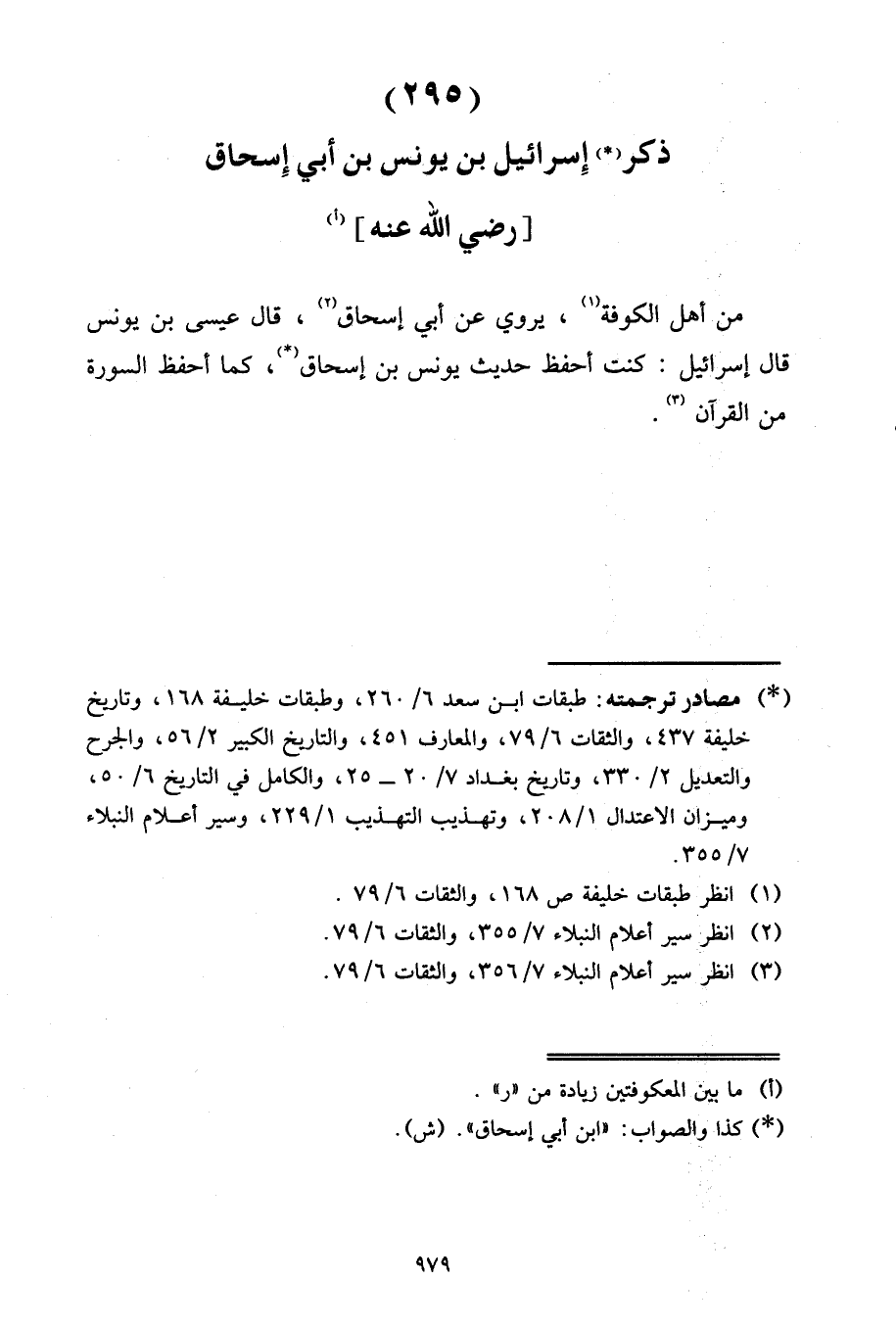 ذِكْرُ إِسْرَائِيلَ بْنِ يُونُسَ بْنِ أَبِي إِسْحَاقَ رَضِيَ اللَّهُ عَنْهُ